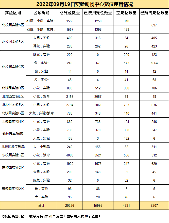 2022年09月19日-实验动物中心笼位使用情况
