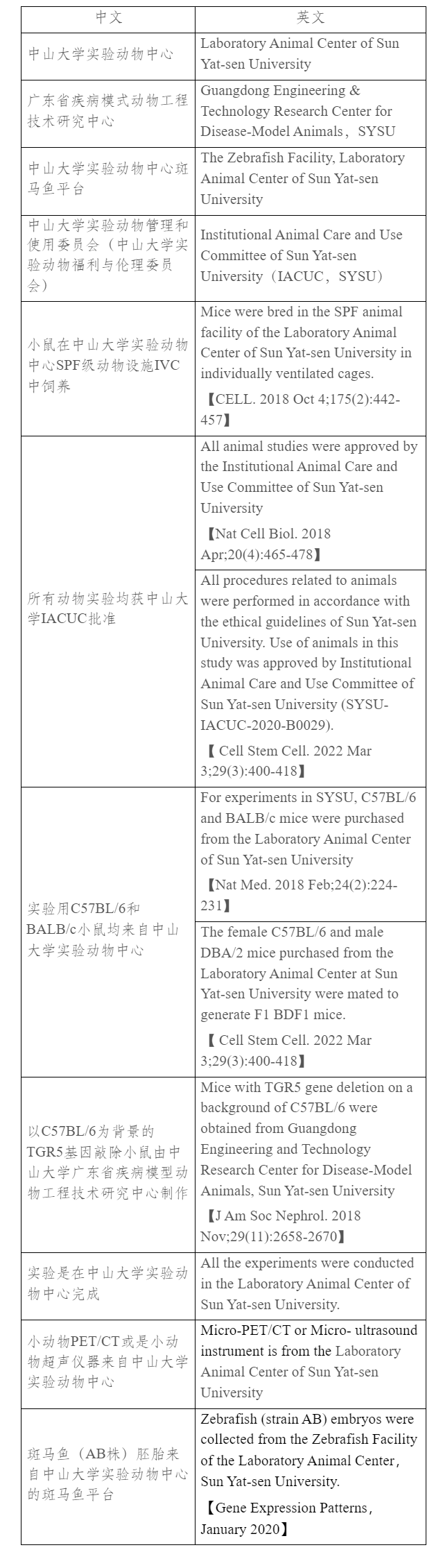 为了便于在学术成果中体现402永利集团官网实验动物中心的服务和贡献,现将相关中英文信息供各课题组参考: