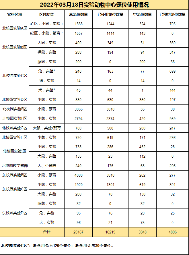 2022年03月18日-实验动物中心笼位使用情况