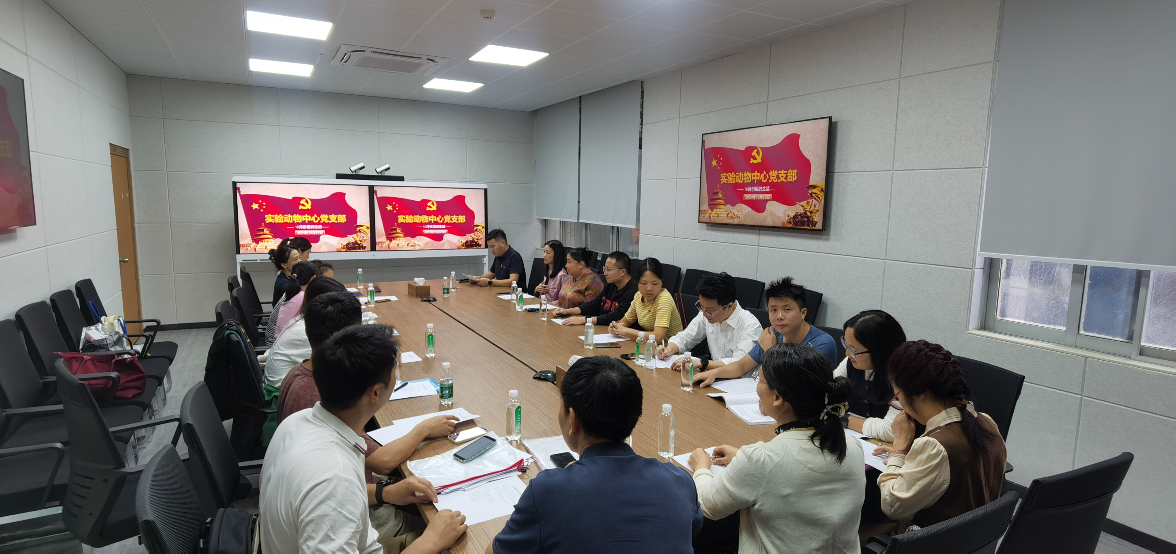 首先,党支部召开了集中学习会议。会议由党支部书记蔡卫斌同志主持,全体党员及预备党员参与。蔡书记传达了机关党委10月支部书记例会的主要学习内容及精神,概述了支部近期工作重点,包括做好新入职员工党组织关系的接收、规范党员发展流程等,并强调了党员队伍发展的重要性,鼓励大家在工作和学习中勇于担当,成为先锋模范。他特别指出,实验动物中心作为学校教学、科研的重要支撑,应不断提升服务质量和管理水平,为学校的百年新征程贡献力量。